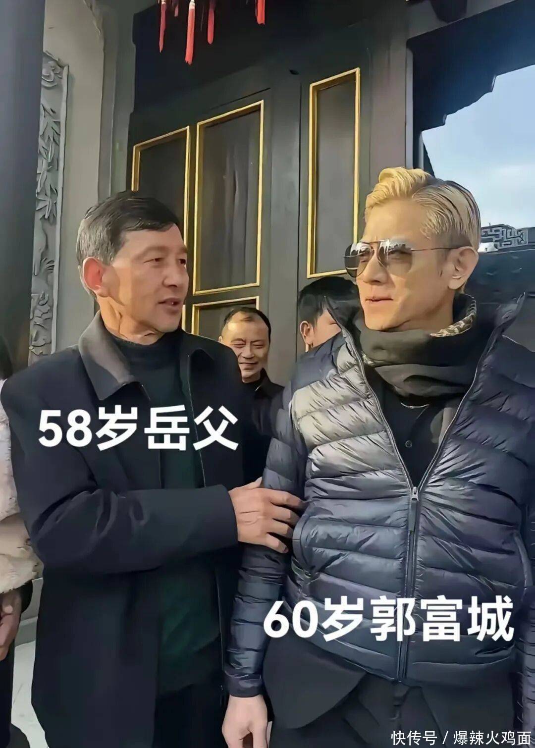 2026年,60岁的郭富城岁的岳父同框时,郭富城毫无白发肚腩,岳父更显老态,两人被调侃"像两代人"。